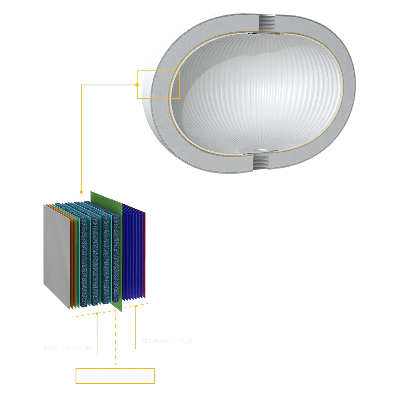 Fully reconfigurable interior, making full use of the 3-dimensional volume in zero gravity and maximizing crew wellbeing and effective operations in space.